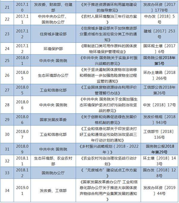 “十三五”以來,國家頻繁出臺相關(guān)政策為“無廢城市”的建設(shè)進行鋪墊,這些政策對于“無廢城市”建設(shè)發(fā)展影響重大、指導(dǎo)意義深遠(yuǎn)。