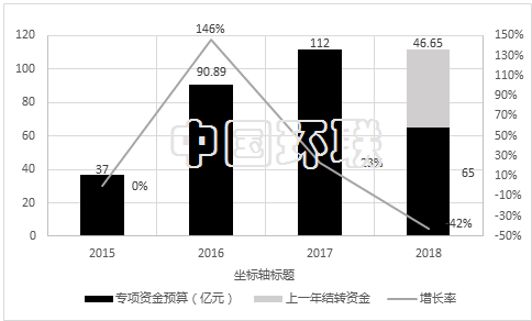 2017年中央財政預(yù)算土壤污染防治專項資金達到112億元,2018年預(yù)算數(shù)為65億元,實際預(yù)算為111.65億元,基本與同期持平。