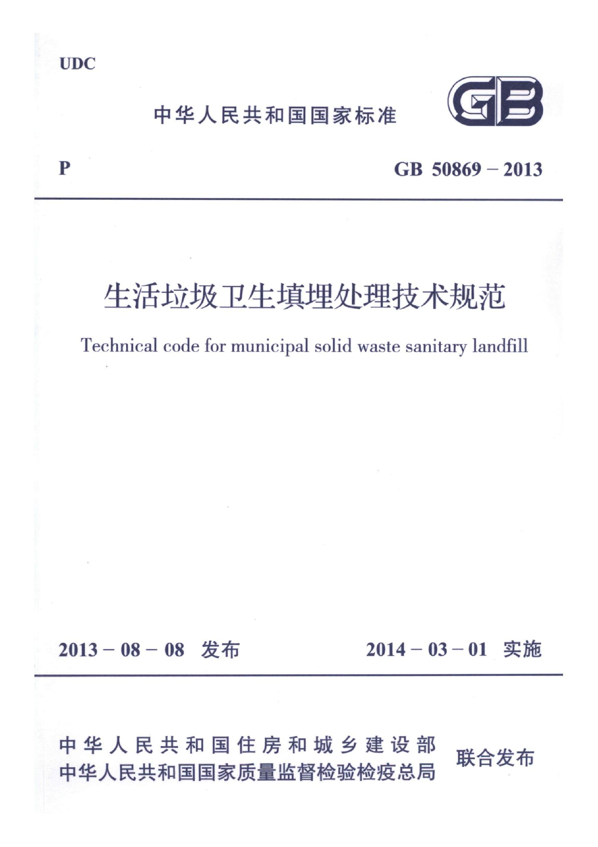 生活垃圾衛(wèi)生填埋處理技術(shù)規(guī)范(GB 50869-2013)