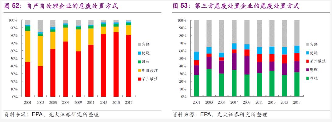 尤其是2003年伊拉克戰(zhàn)爭及美國的頁巖油、氣革命,極大的推動了美國石油化工相關(guān)產(chǎn)業(yè)的危廢治理現(xiàn)場服務(wù)、末端處置需求,也給予相關(guān)危廢從業(yè)公司以開展新業(yè)務(wù)擴展收入的重要機會。