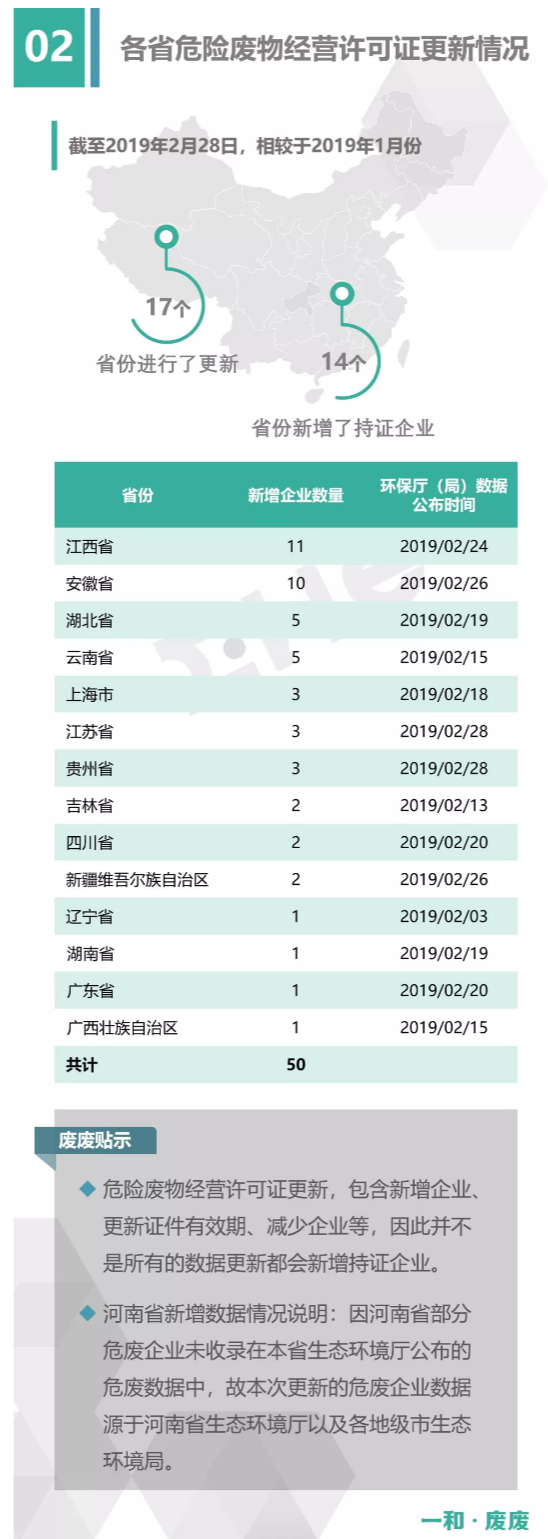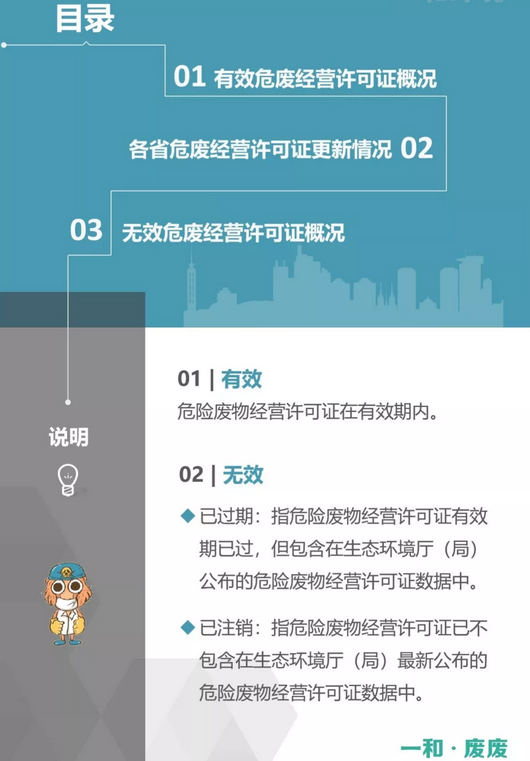 2.統(tǒng)計范圍:本次數(shù)據(jù)收集統(tǒng)計的范圍為省級生態(tài)環(huán)境廳(局)官方公布的持有危險廢物經(jīng)營許可證企業(yè)的數(shù)據(jù),因此由地級市發(fā)布的醫(yī)療廢物經(jīng)營許可證、收集經(jīng)營許可證,且未納入省級生態(tài)環(huán)境廳(局)公布數(shù)據(jù)的部分,并未計入統(tǒng)計數(shù)據(jù)中。