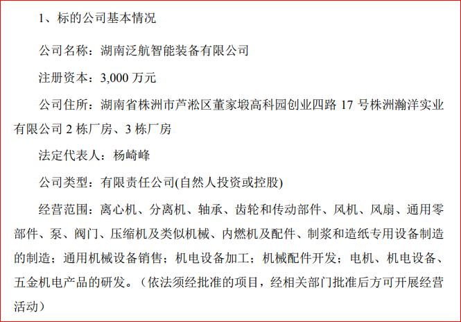 公告顯示,標(biāo)的公司泛航裝備成立于2018 年 3 月,是集離心鼓風(fēng)機(jī)研發(fā)、制造、檢測、裝配及試驗(yàn)于一體的創(chuàng)新型技術(shù)企業(yè),業(yè)務(wù)范圍包括高速高效離心鼓風(fēng)機(jī)、混合器、機(jī)電設(shè)備的研發(fā)、制造與銷售。