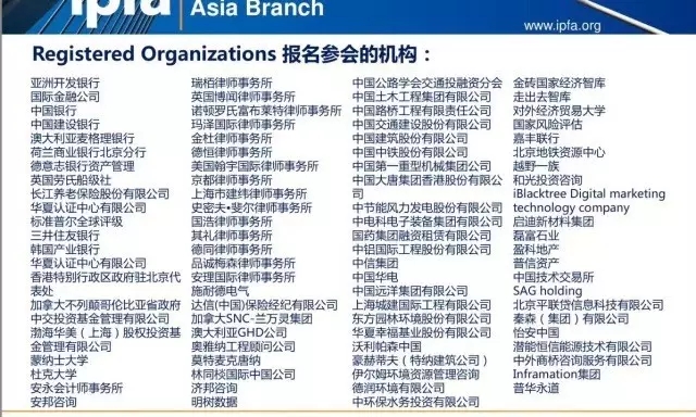 國(guó)際項(xiàng)目融資協(xié)會(huì)(IPFA)是于 1998 年 11 月在倫敦成立的非盈利性國(guó)際機(jī)構(gòu),在全球有超過(guò)600家的機(jī)構(gòu)會(huì)員,是全球最大的聚焦項(xiàng)目融資和PPP的專(zhuān)業(yè)網(wǎng)絡(luò)和交流平臺(tái)。其會(huì)員多是基礎(chǔ)設(shè)施建設(shè)和能源行業(yè)的主要參與者,包括金融機(jī)構(gòu)、項(xiàng)目發(fā)起人、律師事務(wù)所、建筑公司以及從事PPP項(xiàng)目的運(yùn)營(yíng)商。