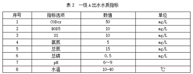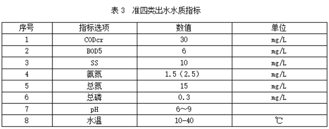 原水經(jīng)處理后,出水水質(zhì)達(dá)到《城鎮(zhèn)污水處理廠污染物排放標(biāo)準(zhǔn)》一級(jí)A標(biāo)準(zhǔn)或參照《地表水環(huán)境質(zhì)量標(biāo)準(zhǔn)》IV類水的準(zhǔn)四類水達(dá)標(biāo)排放,水質(zhì)指標(biāo)見(jiàn)下表:
