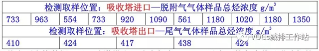 【吸收塔尾氣濃度較高】中石化環(huán)境監(jiān)測總站、中石化撫順石油研究院對(duì)華北地區(qū)采用貧油作為吸收劑噴淋的一套吸附法油氣回收裝置,進(jìn)行了吸收塔進(jìn)出口油氣濃度采樣檢測分析,得到如下數(shù)據(jù):