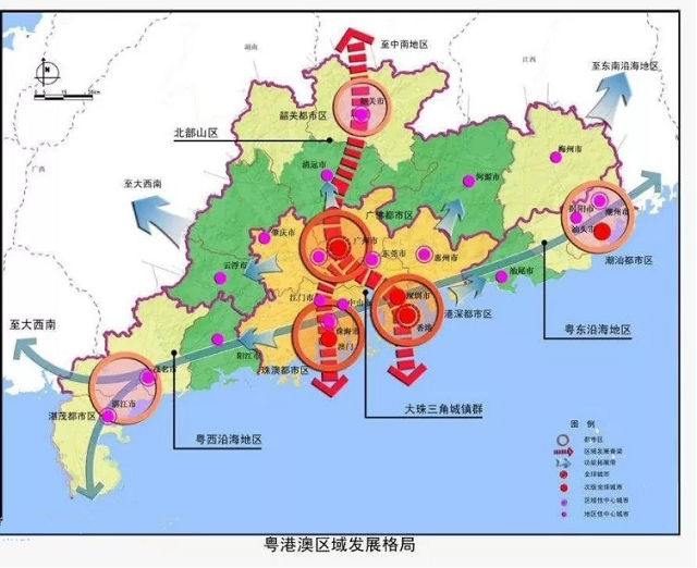粵港澳大灣區(qū)由香港、澳門兩個特別行政區(qū)和廣東省廣州、深圳、珠海、佛山、惠州、東莞、中山、江門、肇慶(珠三角)九個地市組成,總面積5.6萬平方公里,2018年末總?cè)丝谝堰_7000萬、GDP10.867萬億元人民幣,以全國0.6%的面積貢獻了12.4%的GDP,是中國經(jīng)濟實力最雄厚也是最具創(chuàng)新力、發(fā)展活力的區(qū)域,在國家整體發(fā)展戰(zhàn)略中具有舉足輕重的地位。