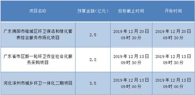 環(huán)衛(wèi)大標(biāo)出沒,3個過億項(xiàng)目已經(jīng)啟動招標(biāo),其中2個在廣東,1個在河北,心動的你不要錯過招標(biāo)時間哦。