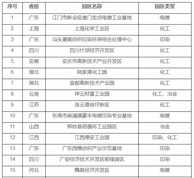 深入推進環(huán)境污染第三方治理園區(qū)名單(擬)