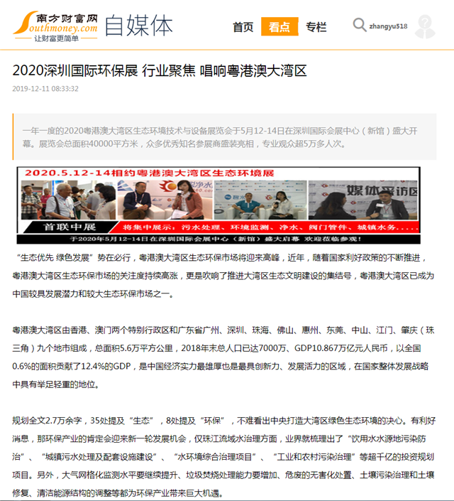 還在等什么?2020年5月12-14日我們都在深圳國際環(huán)保展,來一起見證參與,各大媒體都追捧報道的粵港澳大灣區(qū)環(huán)保產(chǎn)業(yè)盛會吧!