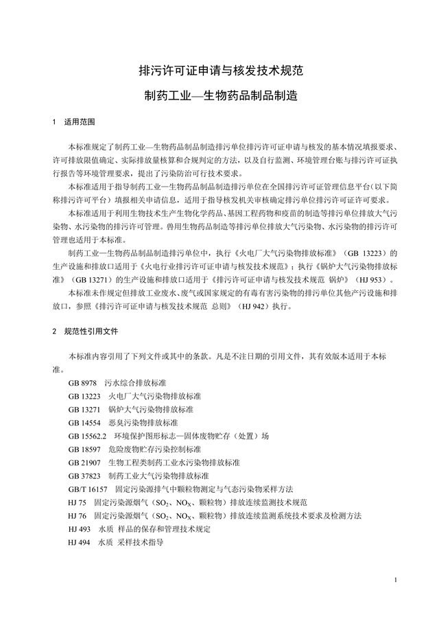 排污許可證申請(qǐng)與核發(fā)技術(shù)規(guī)范 制藥工業(yè)—生物藥品制品制造