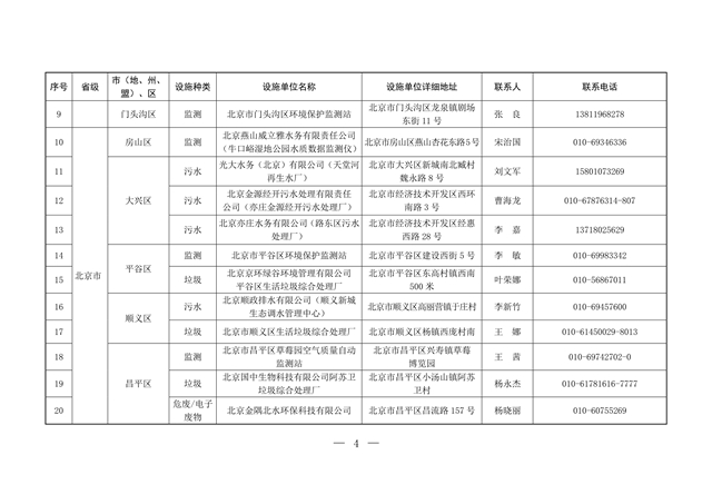 為深入貫徹落實(shí)《中共中央 國務(wù)院關(guān)于全面加強(qiáng)生態(tài)環(huán)境保護(hù)堅(jiān)決打好污染防治攻堅(jiān)戰(zhàn)的意見》關(guān)于“2020年年底前,地級(jí)及以上城市符合條件的環(huán)保設(shè)施和城市污水垃圾處理設(shè)施向社會(huì)開放,接受公眾參觀”的要求,進(jìn)一步保障公眾知情權(quán)、參與權(quán)、監(jiān)督權(quán),結(jié)合《關(guān)于進(jìn)一步做好全國環(huán)保設(shè)施和城市污水垃圾處理設(shè)施向公眾開放工作的通知》(環(huán)辦宣教〔2018〕29號(hào))目標(biāo),生態(tài)環(huán)境部會(huì)同住房城鄉(xiāng)建設(shè)部組織各地確定了第三批向公眾開放的環(huán)保設(shè)施和城市污水垃圾處理設(shè)施單位名單(以下簡稱名單,詳見附件),共計(jì)604家,其中環(huán)境監(jiān)測設(shè)施168家、污水處理設(shè)施193家、垃圾處理設(shè)施146家、危廢或電子廢棄物處理設(shè)施97家,現(xiàn)予公布。