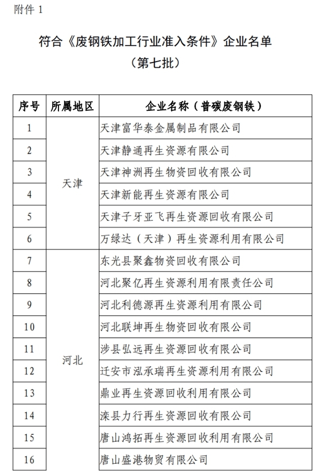 1.符合《廢鋼鐵加工行業(yè)準入條件》企業(yè)名單(第七批)