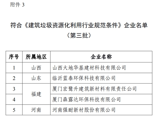 3.符合《建筑垃圾資源化利用行業(yè)規(guī)范條件》企業(yè)名單(第三批)