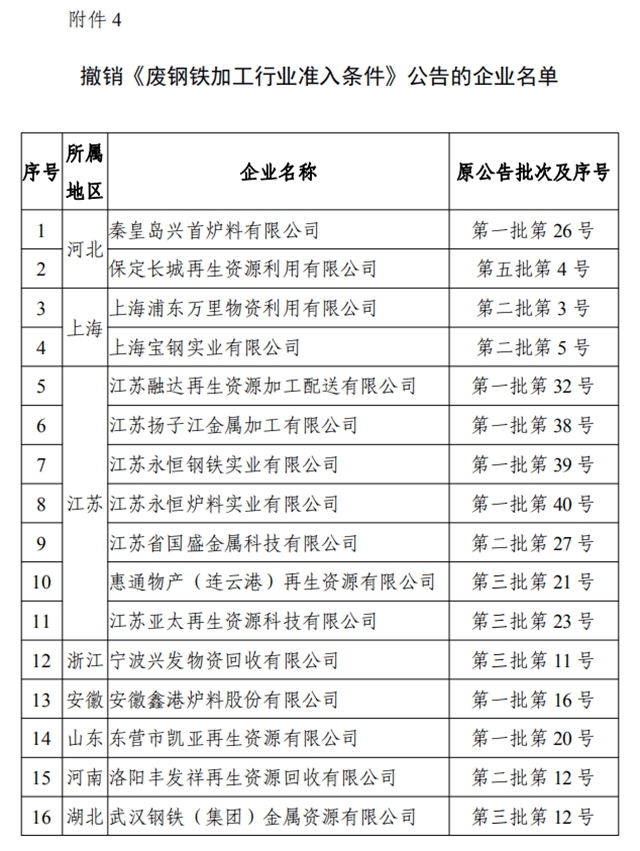 4.撤銷《廢鋼鐵加工行業(yè)準入條件》公告的企業(yè)名單