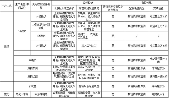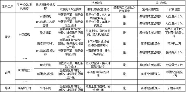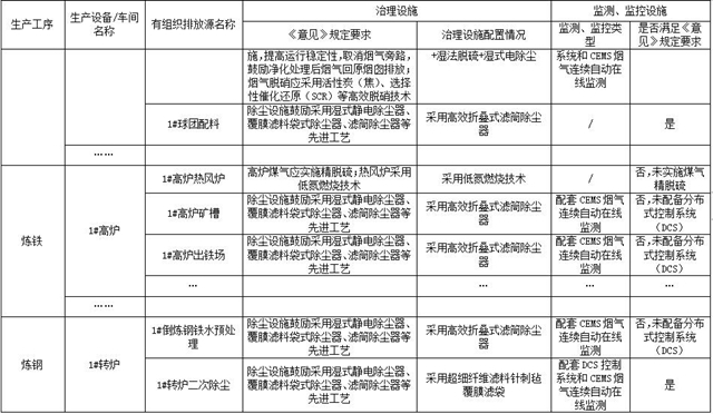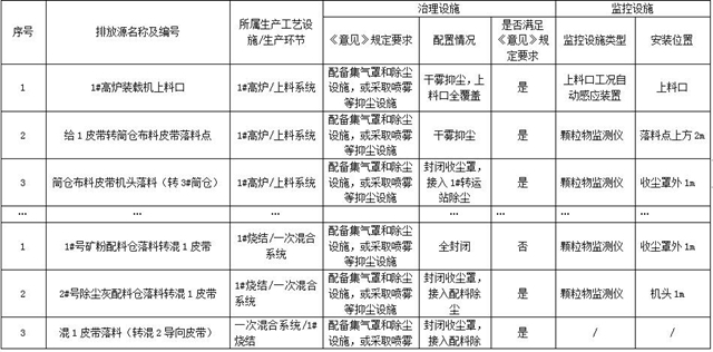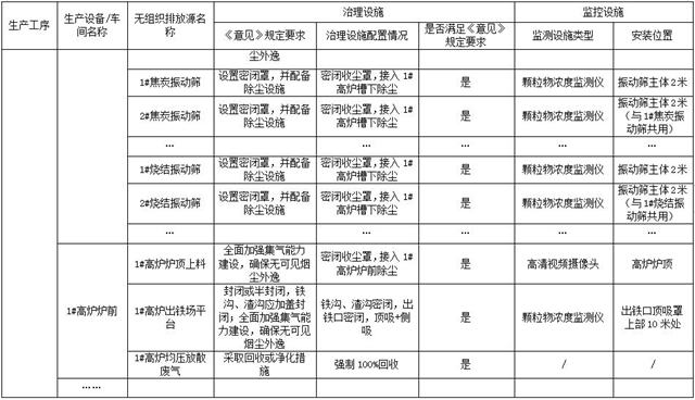 按照《意見》和《排污許可證申請與核發(fā)技術(shù)規(guī)范 鋼鐵行業(yè)》(HJ846-2017)要求,對全廠相應(yīng)有組織排放源進行全面排查,建立有組織排放源清單,明確治理技術(shù)路線和監(jiān)控措施,清單格式和內(nèi)容可參考附表1。