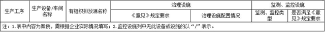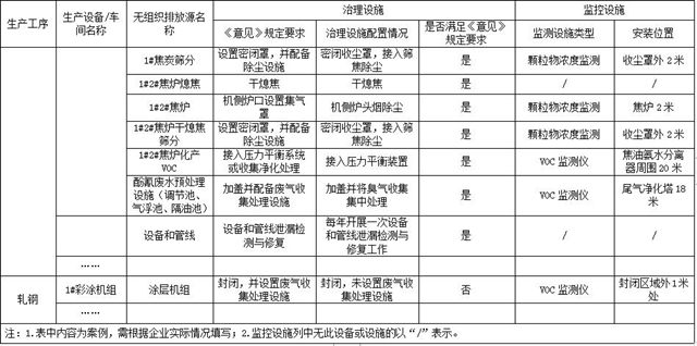 生產(chǎn)工藝過程無組織排放源清單及控制措施對照表(示例)