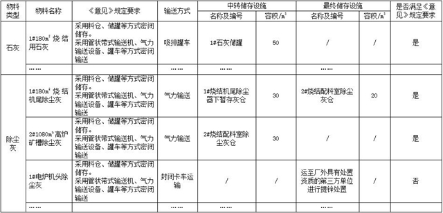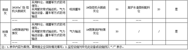 粉狀物料儲存和輸送設(shè)施清單及控制措施對照表(示例)