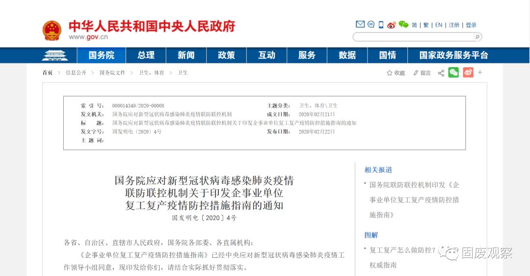 權威發(fā)布 | 國務院:《企事業(yè)單位復工復產疫情防控措施指南》