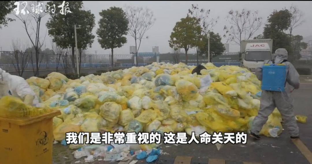 這些醫(yī)療廢物包括用過(guò)的防護(hù)服、手套、口罩、醫(yī)療用具甚至還有病患的嘔吐物。