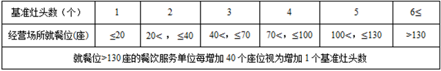 表2 餐飲服務(wù)單位基準(zhǔn)灶頭數(shù)的折算方法