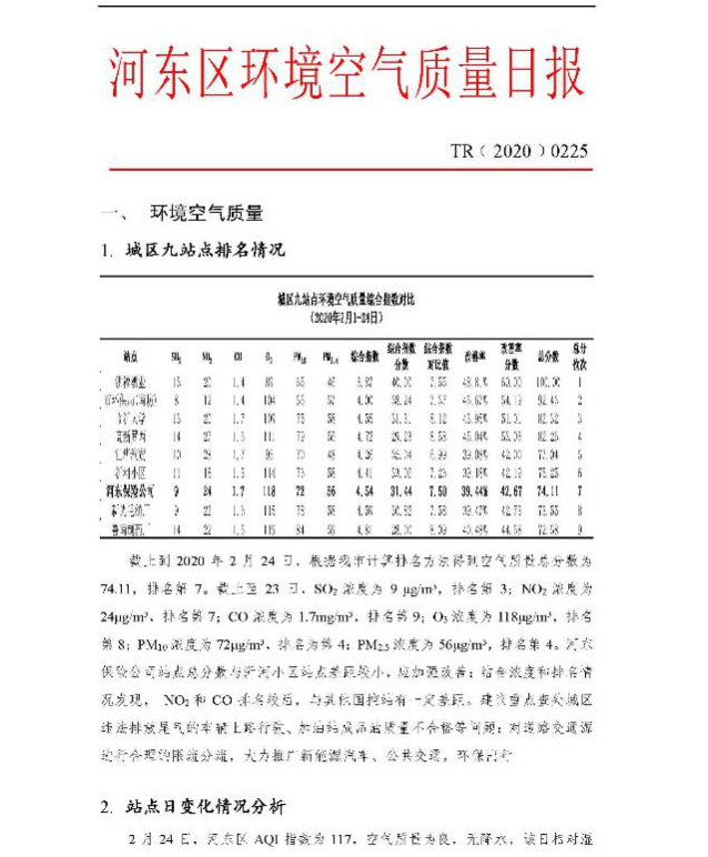 在環(huán)境管理技術(shù)指導(dǎo)過(guò)程中,公司堅(jiān)持駐場(chǎng)人員指導(dǎo)服務(wù)+總部大數(shù)據(jù)分析支撐的雙管齊下服務(wù)模式,每日為臨沂市河?xùn)|區(qū)提供環(huán)境空氣質(zhì)量日?qǐng)?bào),提供針對(duì)污染源排查的數(shù)據(jù)分析報(bào)告,如分析2020年春節(jié)前后機(jī)動(dòng)車(chē)變化情況對(duì)國(guó)控站點(diǎn)的數(shù)據(jù)影響程度的“春節(jié)效應(yīng)”、“祭祀效應(yīng)”等。
