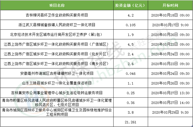 環(huán)保在線關(guān)注環(huán)衛(wèi)市場動(dòng)態(tài)時(shí)發(fā)現(xiàn),短短幾天時(shí)間,招標(biāo)市場就聚集了多個(gè)環(huán)衛(wèi)相關(guān)標(biāo)的,項(xiàng)目總投資額高達(dá)21億元。