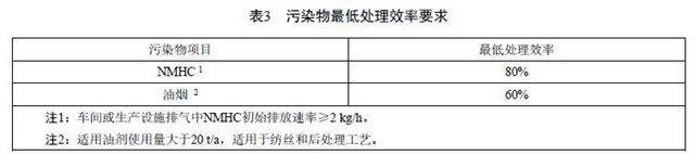 4.1.5 NMHC和油煙的最低處理效率應(yīng)滿足表3規(guī)定的最低處理效率,并應(yīng)同時(shí)執(zhí)行表1或表4規(guī)定的排放濃度限值。