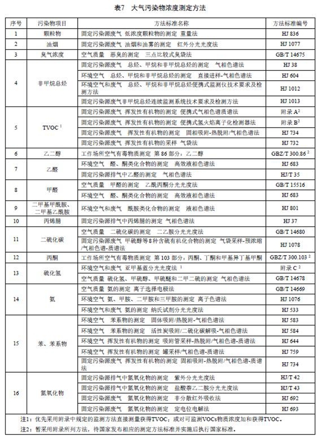 6.2.4 大氣污染物的分析測(cè)定采用表7中所列的方法標(biāo)準(zhǔn)。