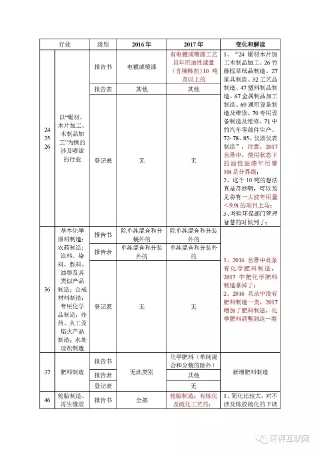 《建設(shè)項(xiàng)目分類管理名錄》2017版逐項(xiàng)PK2016版