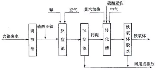 氣浮法:氣浮法用于處理鍍鉻廢水的原理是:在酸性的條件下硫酸亞鐵和六價(jià)鉻進(jìn)行氧化還原反應(yīng),然后在堿性條件下產(chǎn)生絮凝體,在無數(shù)微細(xì)氣泡作用下使絮凝體浮出水面,使水質(zhì)變清。