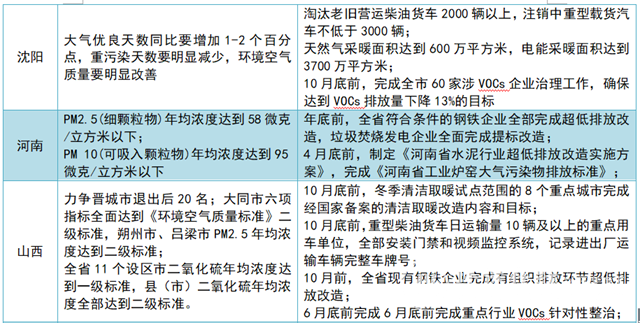 從上表可以看出,各地方在堅持主要路線的情況下,結(jié)合實際情況,制定了攻堅計劃,尤其是加快了對鋼鐵超低排放、推進清潔能源和柴油車治理的進程。