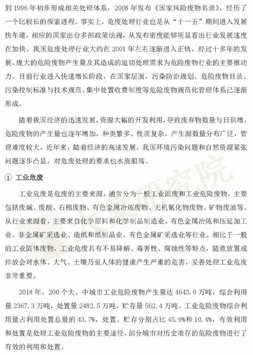 《2020年中國危廢處理行業(yè)概覽》解析危廢處理行業(yè)現(xiàn)狀及發(fā)展趨勢。