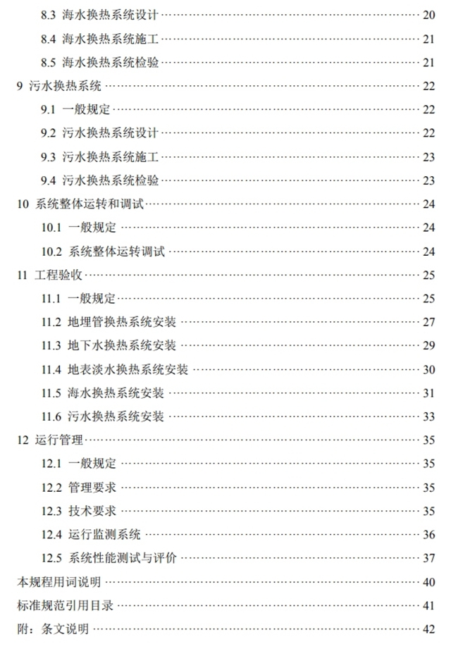 主要技術(shù)內(nèi)容是:總則,術(shù)語(yǔ),基本規(guī)定,地源熱泵系統(tǒng)設(shè)計(jì),地埋管換熱系統(tǒng),地下水換熱系統(tǒng),地表淡水換熱系統(tǒng),海水換熱系統(tǒng),污水換熱系統(tǒng),系統(tǒng)整體運(yùn)轉(zhuǎn)和調(diào)試,工程驗(yàn)收,運(yùn)行管理。本規(guī)程由浙江省住房和城鄉(xiāng)建設(shè)廳負(fù)責(zé)管理,浙江省建筑科學(xué)設(shè)計(jì)研究院有限公司負(fù)責(zé)對(duì)具體技術(shù)內(nèi)容的解釋。