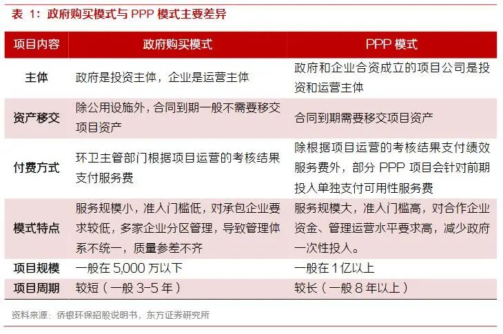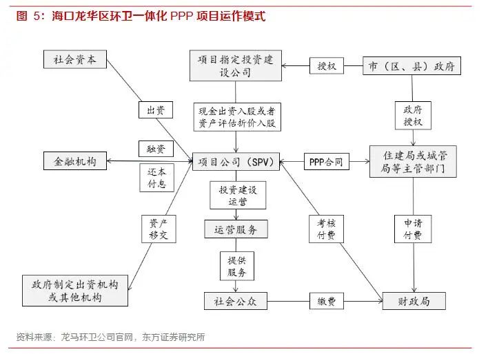 PPP合營(yíng)模式(Public-Private-Partnership)指的是由公共部門(mén)通過(guò)與私人部門(mén)建立伙伴關(guān)系,共同提供公共產(chǎn)品或服務(wù)。PPP合營(yíng)的通常模式是由社會(huì)資本承擔(dān)設(shè)計(jì)、建設(shè)、運(yùn)營(yíng)、維護(hù)基礎(chǔ)設(shè)施的大部分工作,并通過(guò)“使用者付費(fèi)”及必要的“政府付費(fèi)”獲得合理投資回報(bào);政府負(fù)責(zé)基礎(chǔ)設(shè)施及公共服務(wù)價(jià)格和質(zhì)量管理,以保證公共利益最大化。環(huán)衛(wèi)PPP項(xiàng)目的門(mén)檻更高,參與方一般都承擔(dān)環(huán)衛(wèi)設(shè)備的投資任務(wù),因此需要具備一定的資金實(shí)力和較高的運(yùn)營(yíng)管理水平。