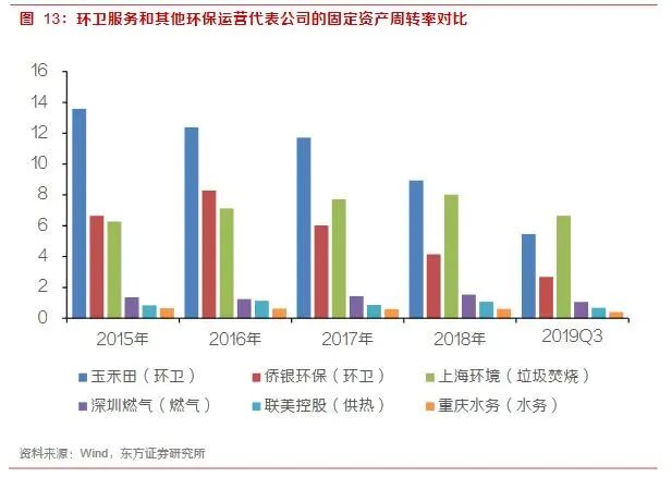 1)輕資產(chǎn),環(huán)衛(wèi)行業(yè)固定資產(chǎn)周轉(zhuǎn)率在2以上,同時(shí)應(yīng)收賬款賬期一般在三個(gè)月以內(nèi),對(duì)資金的要求相對(duì)較低。近年來(lái)環(huán)衛(wèi)服務(wù)公司固定資產(chǎn)周轉(zhuǎn)率略有下降,主要是因?yàn)樾略鲑?gòu)置了較多的作業(yè)車輛和設(shè)備。