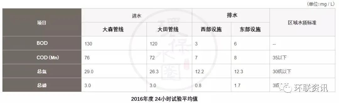 進水和出水的平均質量(2016年度24小時試驗平均值)