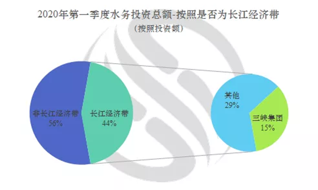一季度水務(wù)市場區(qū)域分布:長江經(jīng)濟(jì)帶占比總體市場份額44%,其中15%為三峽集團(tuán)獲得。(6)