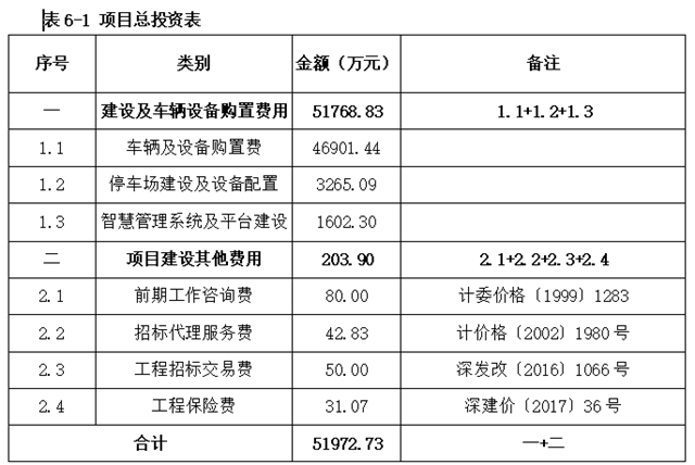 此外,該項目還要求車輛、設備需在接管之日起3個月內到位,智慧管理系統(tǒng)及平臺需在接管之日起6個月內配置到位,停車場需在接管之日起12個月內完成建設。本項目初始總投資為51972.73萬元。