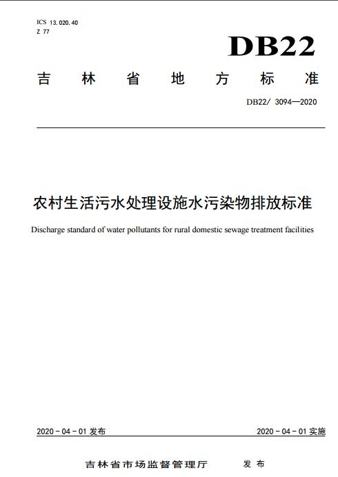 4月1日,經吉林省人民政府批準,吉林省生態(tài)環(huán)境廳聯(lián)合省市場監(jiān)督管理廳發(fā)布吉林省《農村生活污水處理設施水污染物排放標準》(DB22/3094——2020),此文件屬于地方性強制標準,并于2020年4月1日實施。