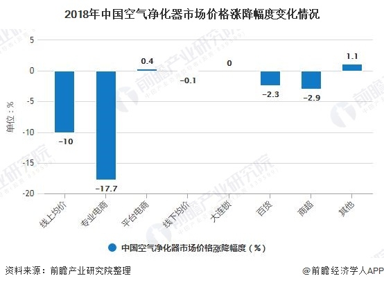3、中國空氣凈化器市場價格下降,線上渠道降價明顯