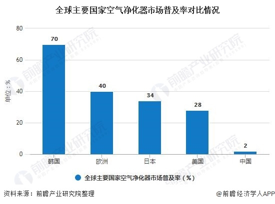 目前,發(fā)達(dá)國家空氣凈化器的普及率遠(yuǎn)高于發(fā)展中國家,其中韓國的普及率達(dá)到了70%,歐洲空氣凈化器的普及率為40%,美國空氣凈化器的普及率為28%,日本空氣凈化器的普及率為34%,而中國的空氣質(zhì)量遠(yuǎn)不及上述國家,空氣凈化器的普及率卻僅有2%。因此我國空氣凈化器市場潛力巨大,作為功能性較強(qiáng)的產(chǎn)品,空氣凈化器不斷拓展產(chǎn)品功能和質(zhì)量,未來行業(yè)有望向智能化和功能創(chuàng)新化方向發(fā)展。