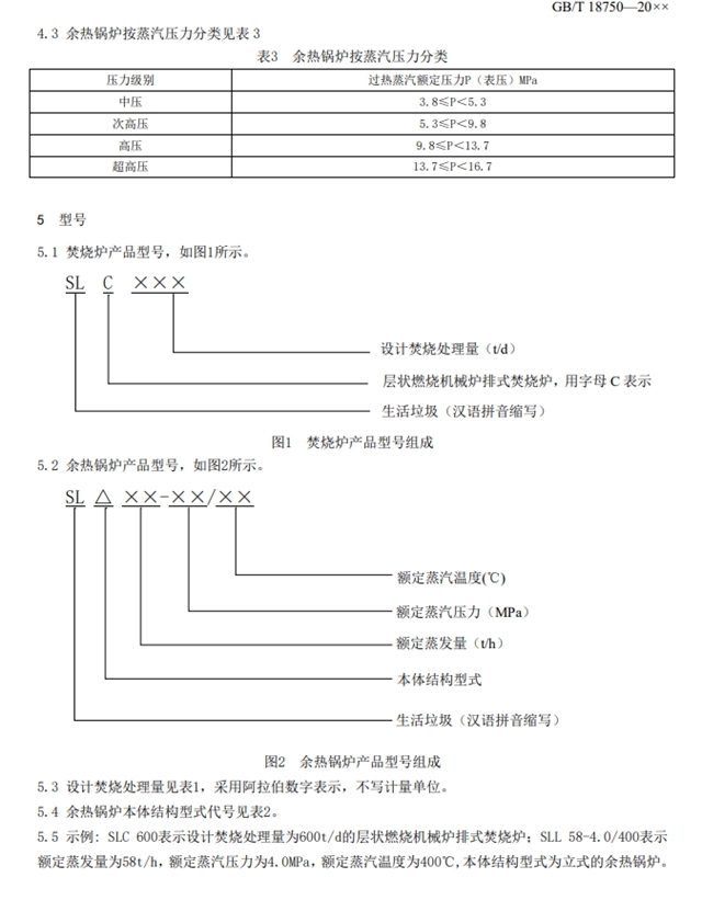 ——第5章修訂后分別對焚燒爐和余熱鍋爐規(guī)定型號。