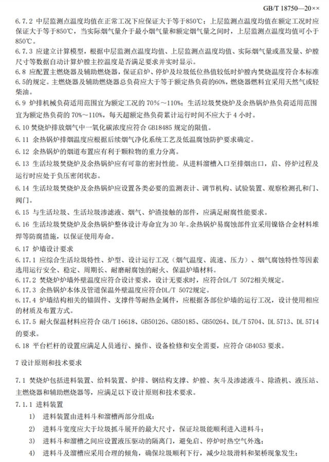 ——第6章增加焚燒垃圾要求、燃燒圖說明、自動燃燒控制系統(tǒng)要求、爐膛主控溫度監(jiān)測點(diǎn)布置技術(shù)要求、燃燒器熱負(fù)荷要求、排煙污染物控制要求以及排煙溫度確定原則等內(nèi)容。