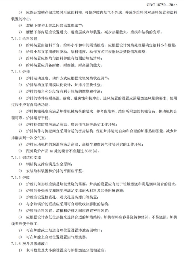 ——取消原標(biāo)準(zhǔn)附錄A《機(jī)械爐排式生活垃圾焚燒爐技術(shù)要求》,在設(shè)計(jì)原則和技術(shù)要求中規(guī)定,對個別條款、文字作了增減修改。