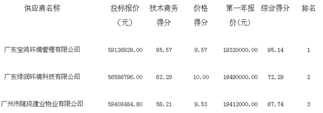 1:中標供應商名稱:廣東寶鴻環(huán)境管理有限公司 法人代表:顏素華 地址:佛山市南海區(qū)獅山鎮(zhèn)羅村機場路17號華南國際醫(yī)療器材產(chǎn)業(yè)中心1棟2幢801號產(chǎn)業(yè)用房(住所申報)