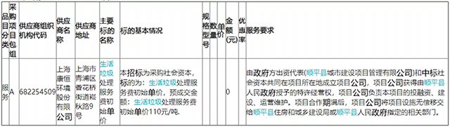 供應(yīng)商名稱(chēng):陜西國(guó)源環(huán)保發(fā)展有限責(zé)任公司和上??岛悱h(huán)境股份有限公司聯(lián)合體;
