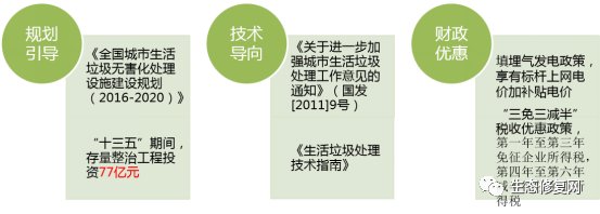 注:統(tǒng)計數(shù)據(jù)來自于十二五期間全國1236座非正規(guī)填埋場治理方案5、政府提供多方位政策支持