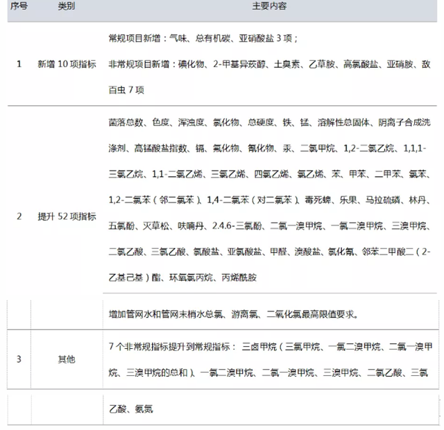 深圳市《生活飲用水水質(zhì)標(biāo)準(zhǔn)》與國家現(xiàn)行標(biāo)準(zhǔn)相比,增加了10項指標(biāo),提升了52項指標(biāo)(含消毒劑);附錄由原來的28項增加到45項;考核方法上提升了出廠水和管網(wǎng)水合格率要求,增加了嗅味物質(zhì)和消毒副產(chǎn)物的檢測,重點關(guān)注龍頭水水質(zhì)。