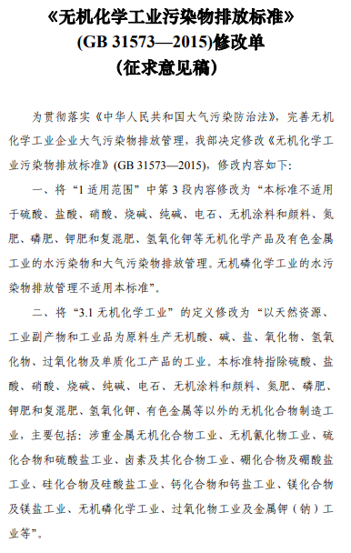 無機化學工業(yè)污染物排放標準修改單(征求意見稿)