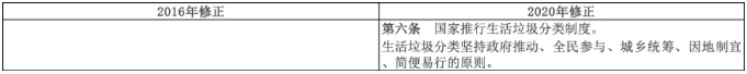 新法第六條,首次在固廢法中提出垃圾分類(lèi)制度,明確了垃圾分類(lèi)在固體廢物管理中的地位。當(dāng)前生活垃圾分類(lèi)相關(guān)最高級(jí)別文件是《城市市容和環(huán)境衛(wèi)生管理?xiàng)l例》,是由國(guó)務(wù)院制定的行政法規(guī),其法律效力低于由全國(guó)人大制定的《中華人民共和國(guó)固體廢物污染環(huán)境防治法》。此次新法中明確提出垃圾分類(lèi)相關(guān)規(guī)定為所有垃圾分類(lèi)相關(guān)條例、法規(guī)提供上位支持。